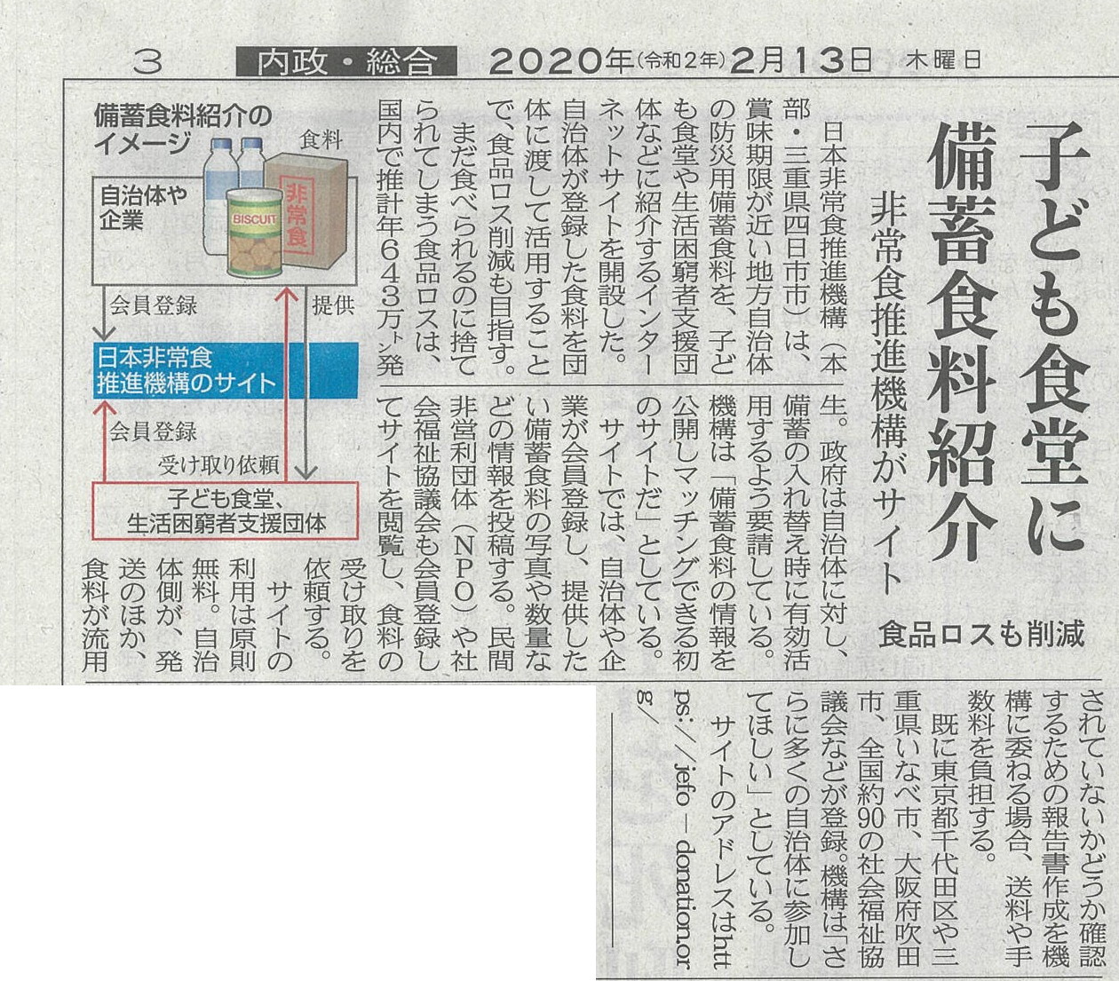 2020.2.13 山陽新聞備蓄品マッチング記事